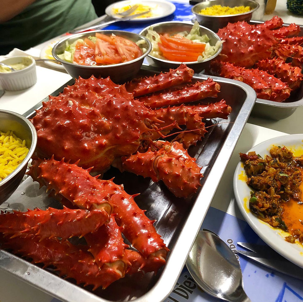 PS2: Esse restaurante aí é o Viejo Marino, e fica no Ushuaia, na Argentina. Esses caranguejos são de água congelante, e existem por lá em abundância. Você consegue encontrar ele fresco também no Chile!